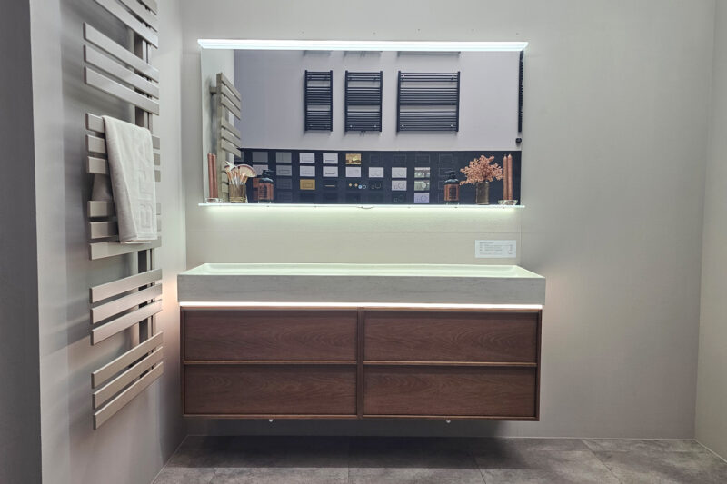 Badmöbel Doppelwaschtisch 160 cm Echtholz Eiche geräuchert Badmöbel Doppelwaschtisch 160 cm Echtholz Eiche geräuchert NP 8.200,- € / jetzt nur 6.800 € AUSSTELLUNGSSTÜCK – sofort zum Mitnehmen BADMÖBEL WASCHTISCH-SET 160 cm besteht aus: Waschtischunterschrank 160 cm 4 x GRASS Schubladen mit Selbsteinzug (2 + 2 innenschubladen) Farbe: geräucherte…