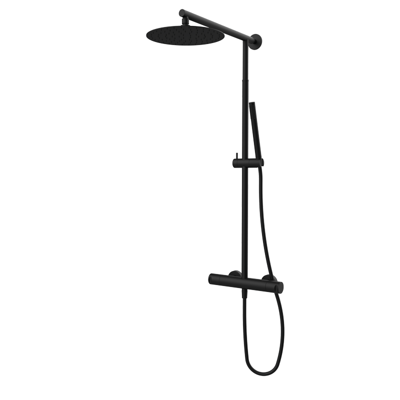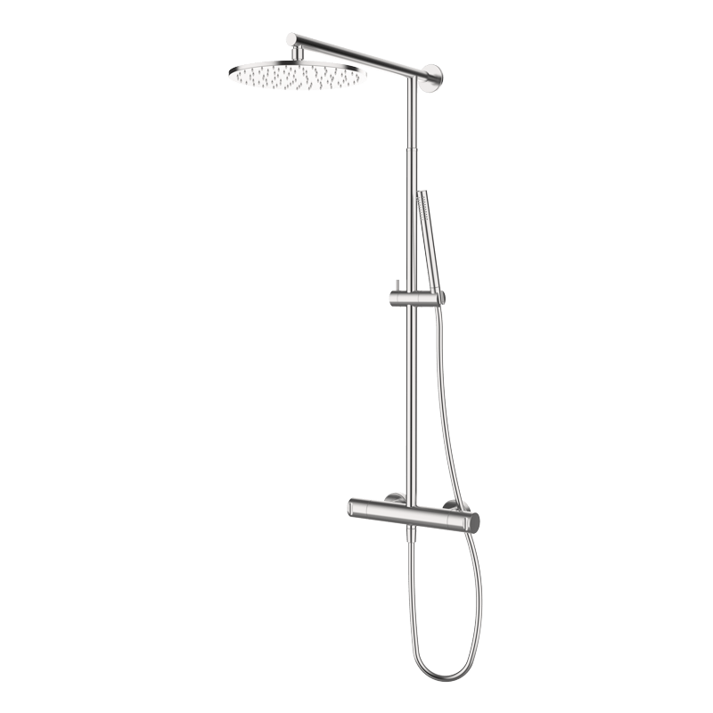 COOL Thermostatische Duscharmatur mit Teleskopsäule Handbrause und rundem Duschkopf Gold gebürstet PVD