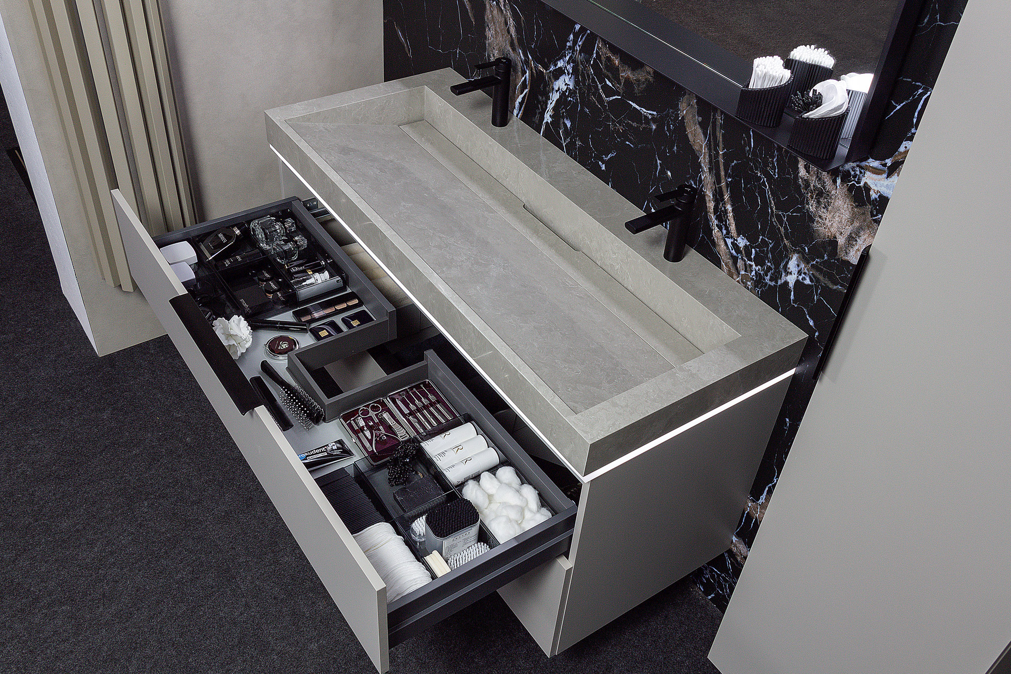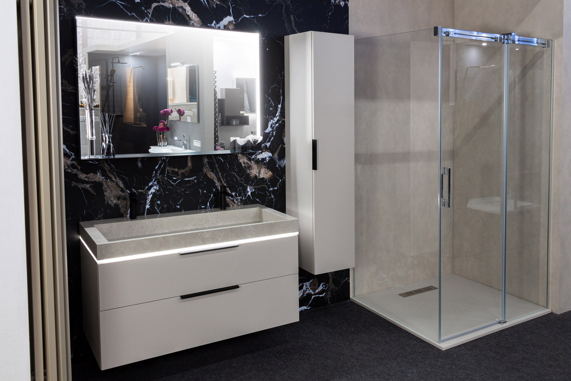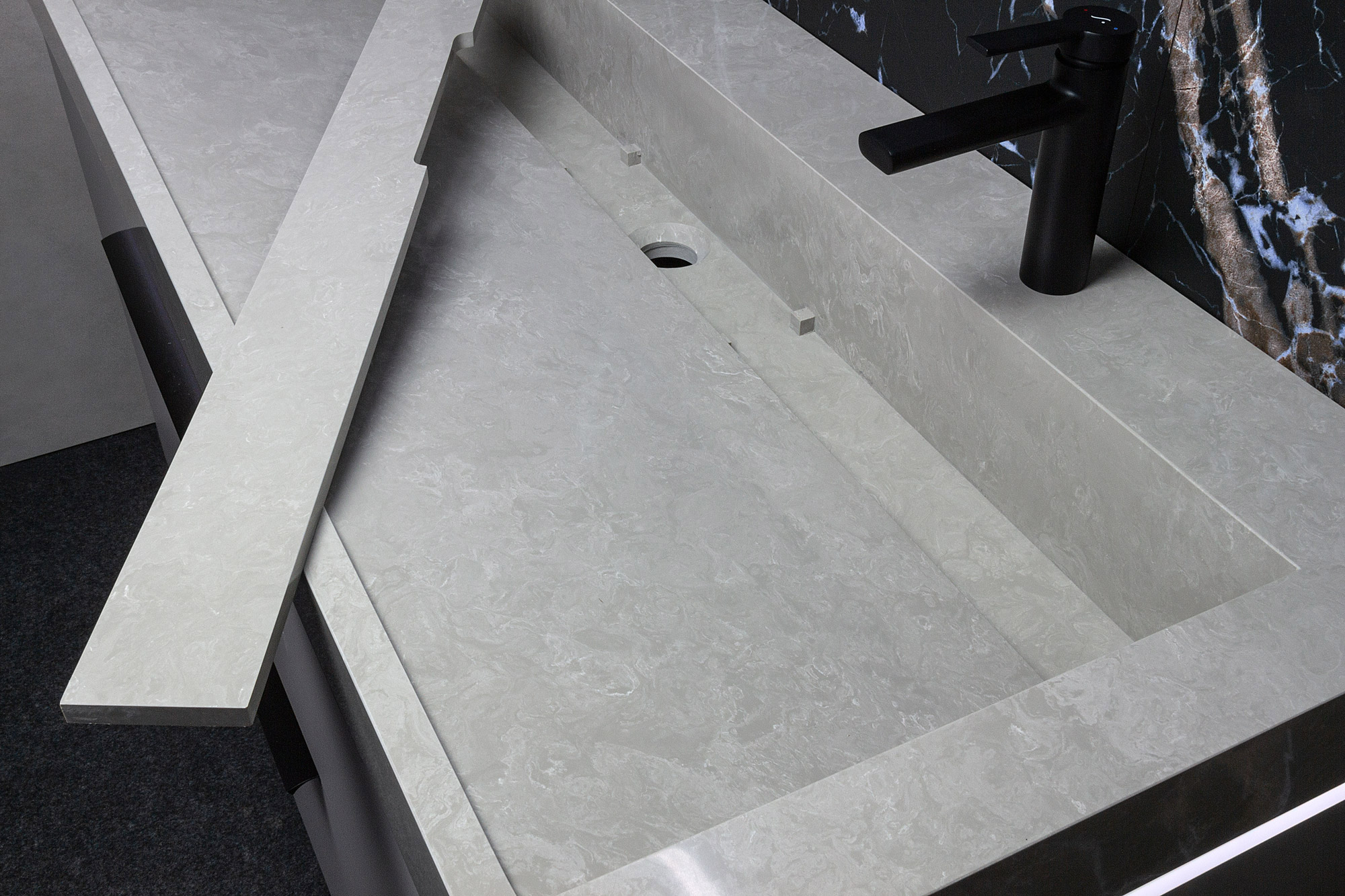 Badezimmermöbel AUSSTELLUNGSSTÜCK – sofort zum Mitnehmen Badmöbel 120 cm – Set besteht aus: Waschbecken 120 x 50 x 8 cm