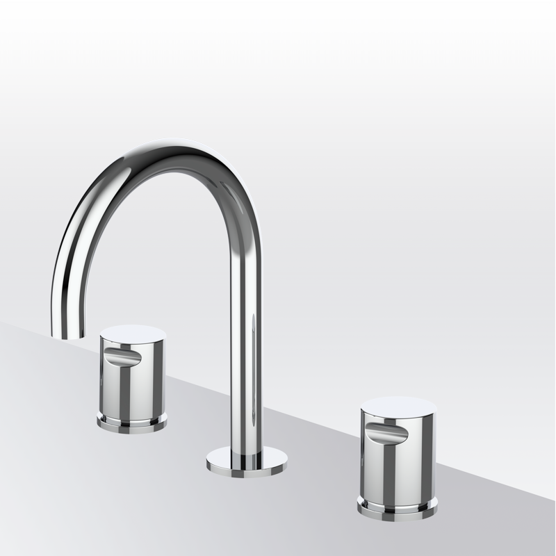 COOL SerieCOOL Waschtischarmatur mit zwei Griffen – Gold gebürstet PVD Referenz: 90300288 Empfohlener Abstand: 150 mm Höhe bis zum Luftsprudler: 115 mm Flexible Anschlussschläuche Fester Auslauf Keramische Dichtscheiben, vollständige Öffnung des Wasserflusses bei 90° Drehung des Griffs Anzahl der Wege: 3 Empfohlenes Einbauloch: Ø 35 mm Katalogseite: 85 Oberflächen Chrome Weiß Schwarz …